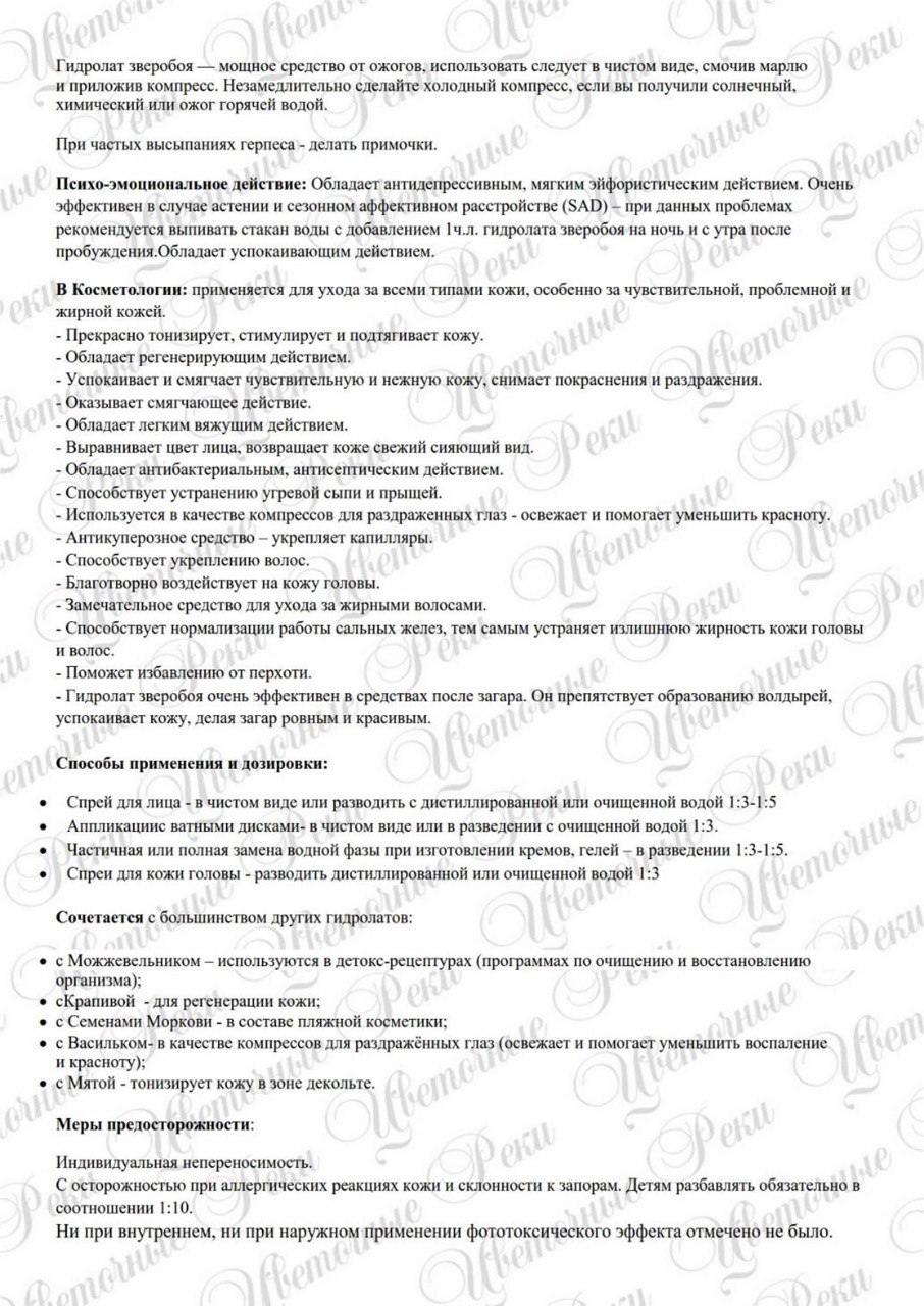 Аромат: зеленый, травяной. Вкус: сладкий, легкий, слегка терпкий. Свойства: Противовоспалительное, дезинфицирующее, антикуперозное, антидепрессивное, укрепляющее, тонизирующее, успокаивающее, антигрибковое, защищающее, регенерирующее, антисептическое, вяжущее, спазмолитическое, диуретическое действие. Обладает общеукрепляющими и кровоостанавливающими свойствами. Адаптоген. В косметологии: применяется для ухода за всеми типами кожи, особенно за чувствительной, проблемной и жирной кожей.