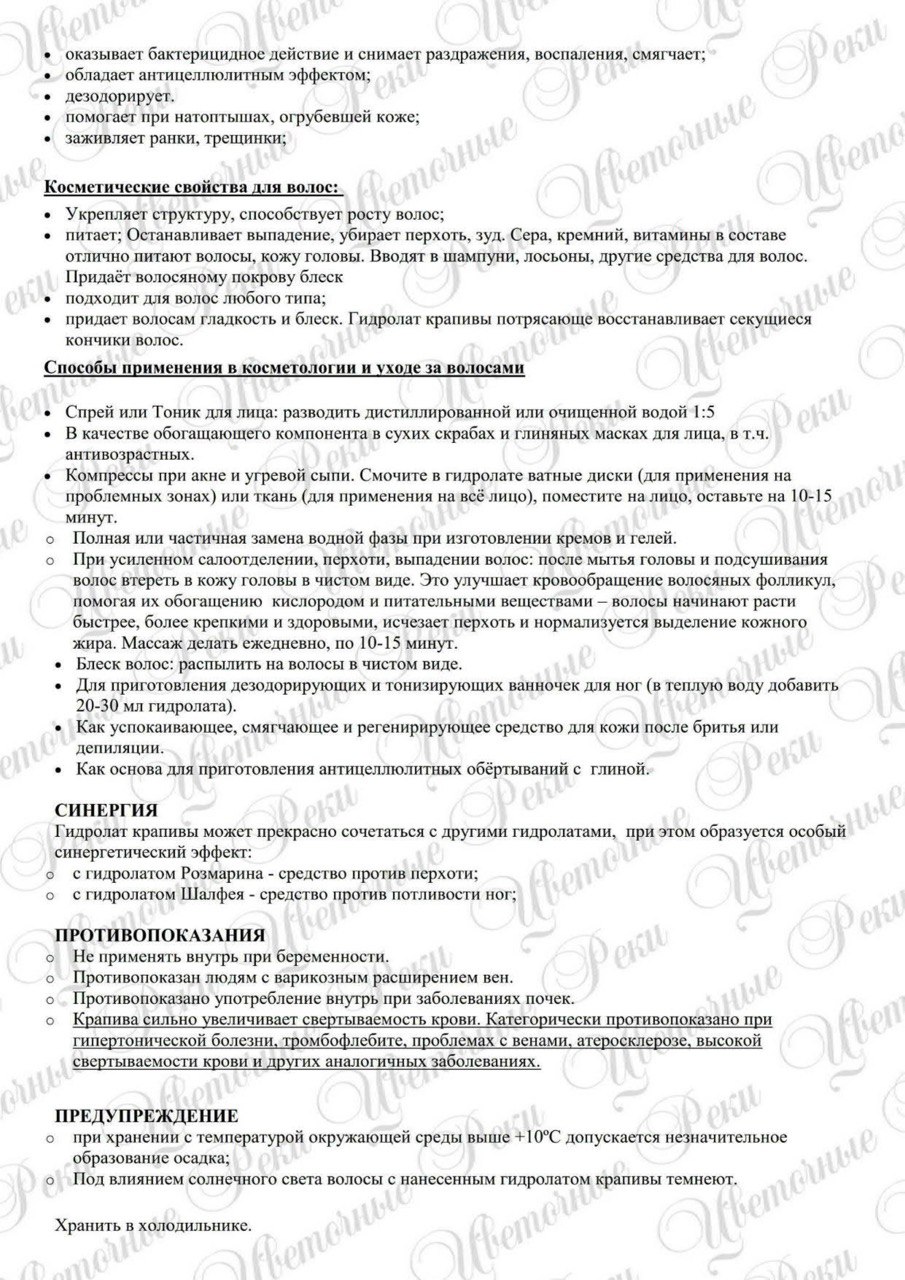 Ну и конечно же, гидролат Крапивы неоценим для волос - укрепляет структуру, способствует росту волос, питает, останавливает выпадение, убирает перхоть и зуд.