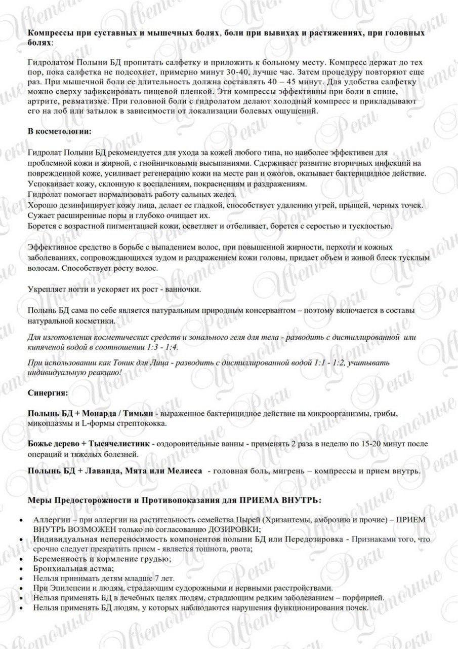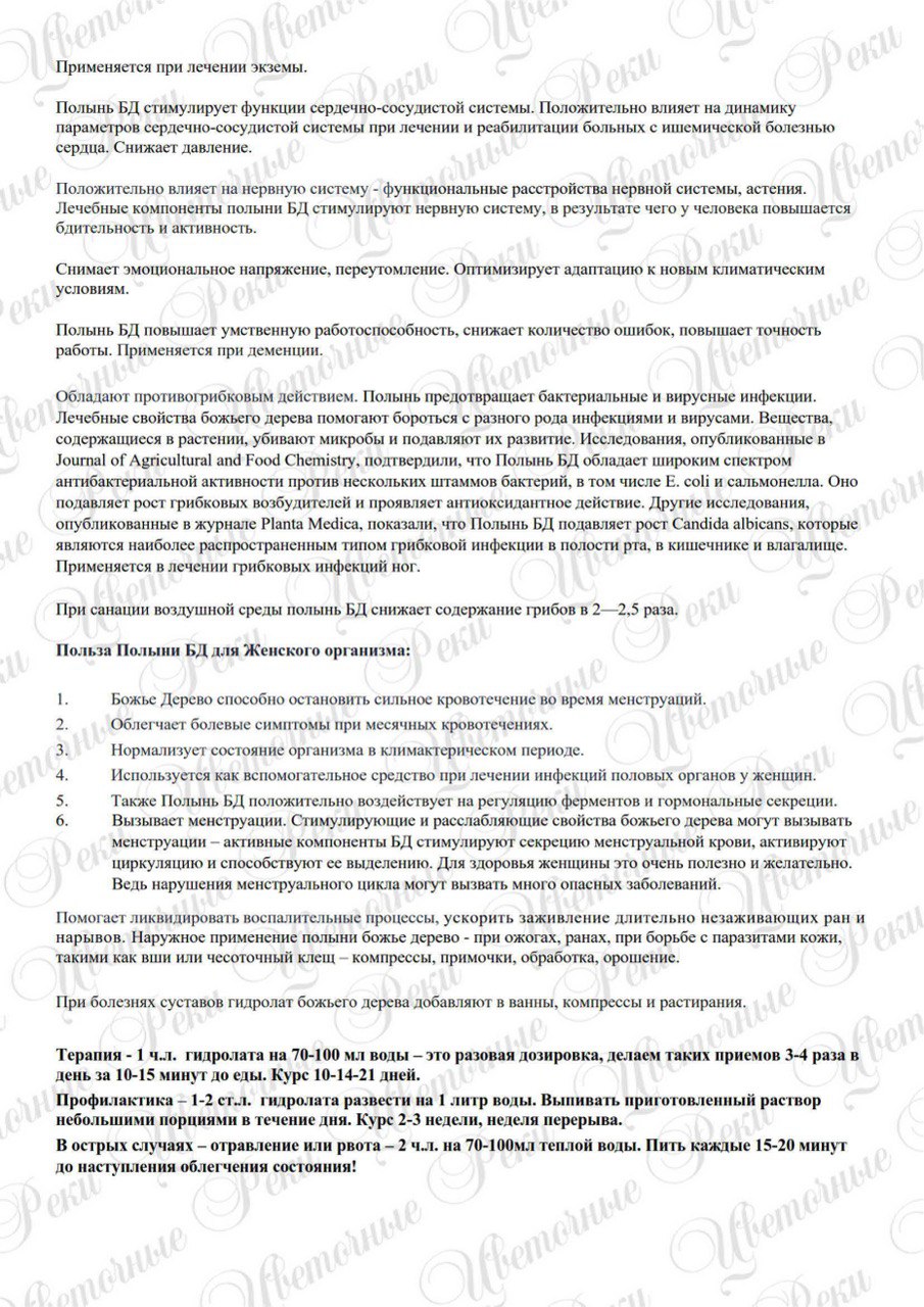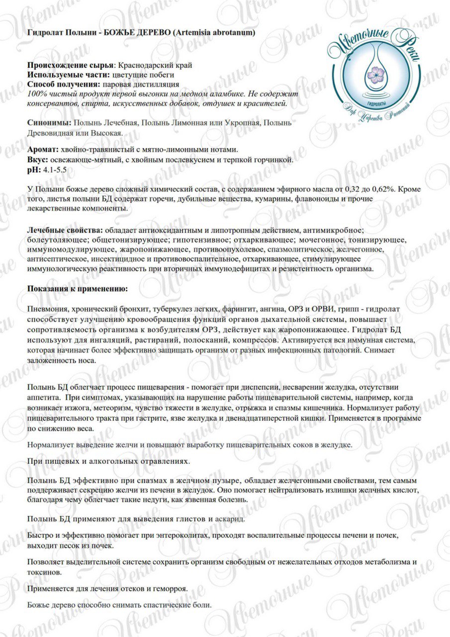 Аромат: хвойно-травянистый с мятно-лимонными нотами. Лечебные свойства: обладает антиоксидантным и липотропным действием, антимикробное; болеутоляющее; общетонизирующее; гипотензивное; отхаркивающее; мочегонное, тонизирующее, иммуномодулирующее, жаропонижающее, противоопухолевое, спазмолитическое, желчегонное, антисептическое, инсектицидное и противовоспалительное, отхаркивающее, стимулирующее иммунологическую реактивность при вторичных иммунодефицитах и резистентность организма. В косметологии: Рекомендуется для ухода за кожей любого типа, но наиболее эффективен для проблемной кожи и жирной, с гнойничковыми высыпаниями. Сдерживает развитие вторичных инфекций на поврежденной коже, усиливает регенерацию кожи на месте ран и ожогов, оказывает бактерицидное действие. Эффективное средство в борьбе с выпадением волос, при повышенной жирности, перхоти и кожных заболеваниях, сопровождающихся зудом и раздражением кожи головы, придает объем и живой блеск тусклым волосам. Способствует росту волос. Укрепляет ногти и ускоряет их рост